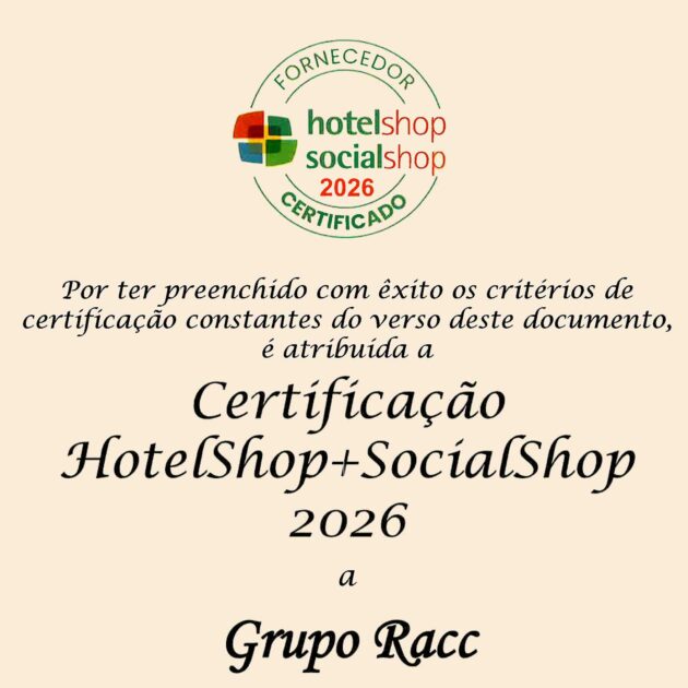 O Grupo Racc foi distinguido com a Certificação HotelShop + SocialShop 2026, atribuída aos fornecedores...